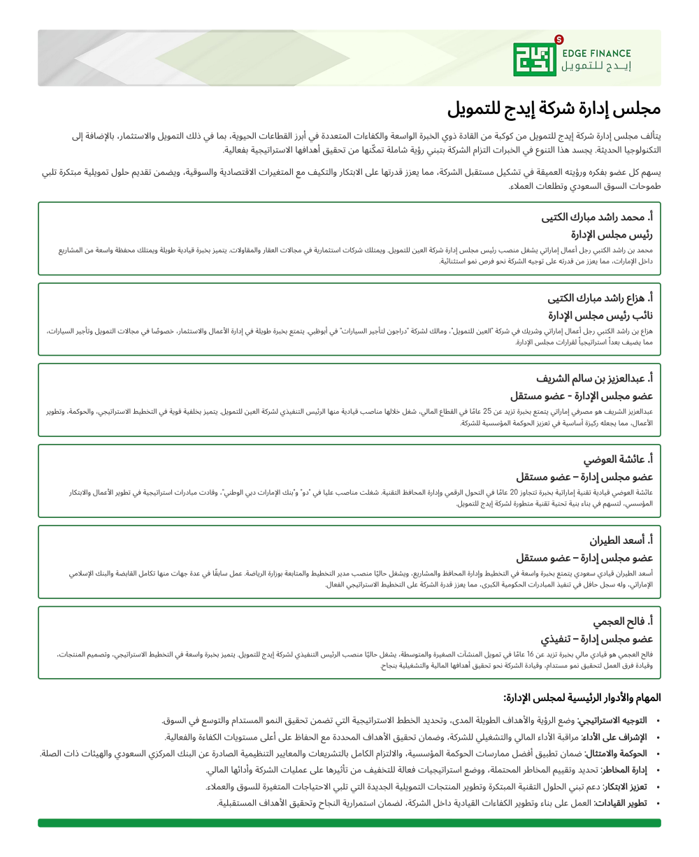 مجلس إدارة شركة إيدج للتمويل
